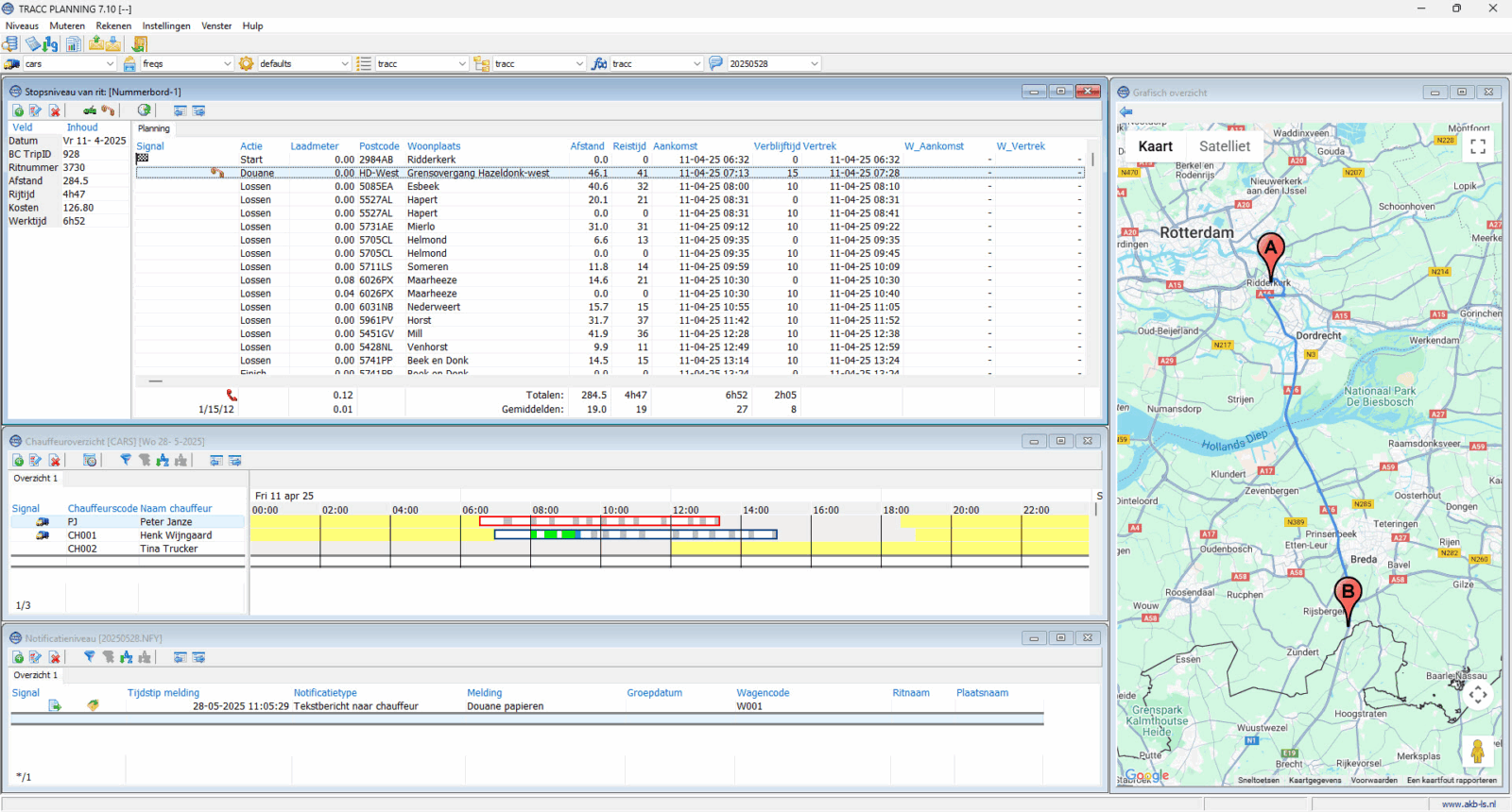 De TRACC Planning software suite van AKB Logistics Software is hét rittenplanning en routeplanningssysteem voor een optimale rittenplanning van uw transport-, distributie– en service activiteiten.
